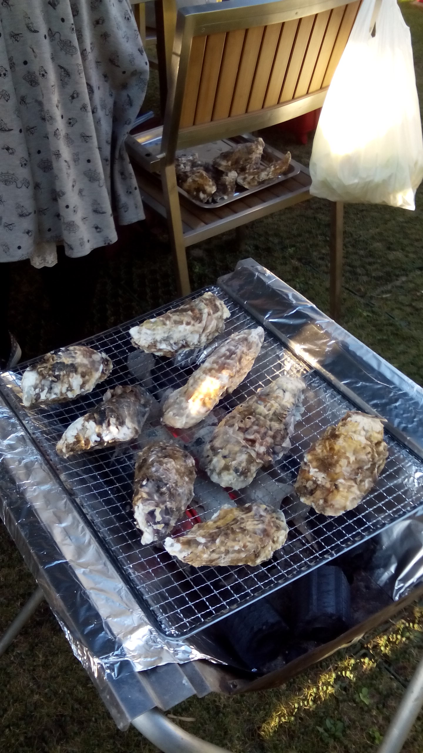 ちっちゃめの炭火コンロは火が近くて目が離せず、吉田肉ちゃんが全面火の番状態!