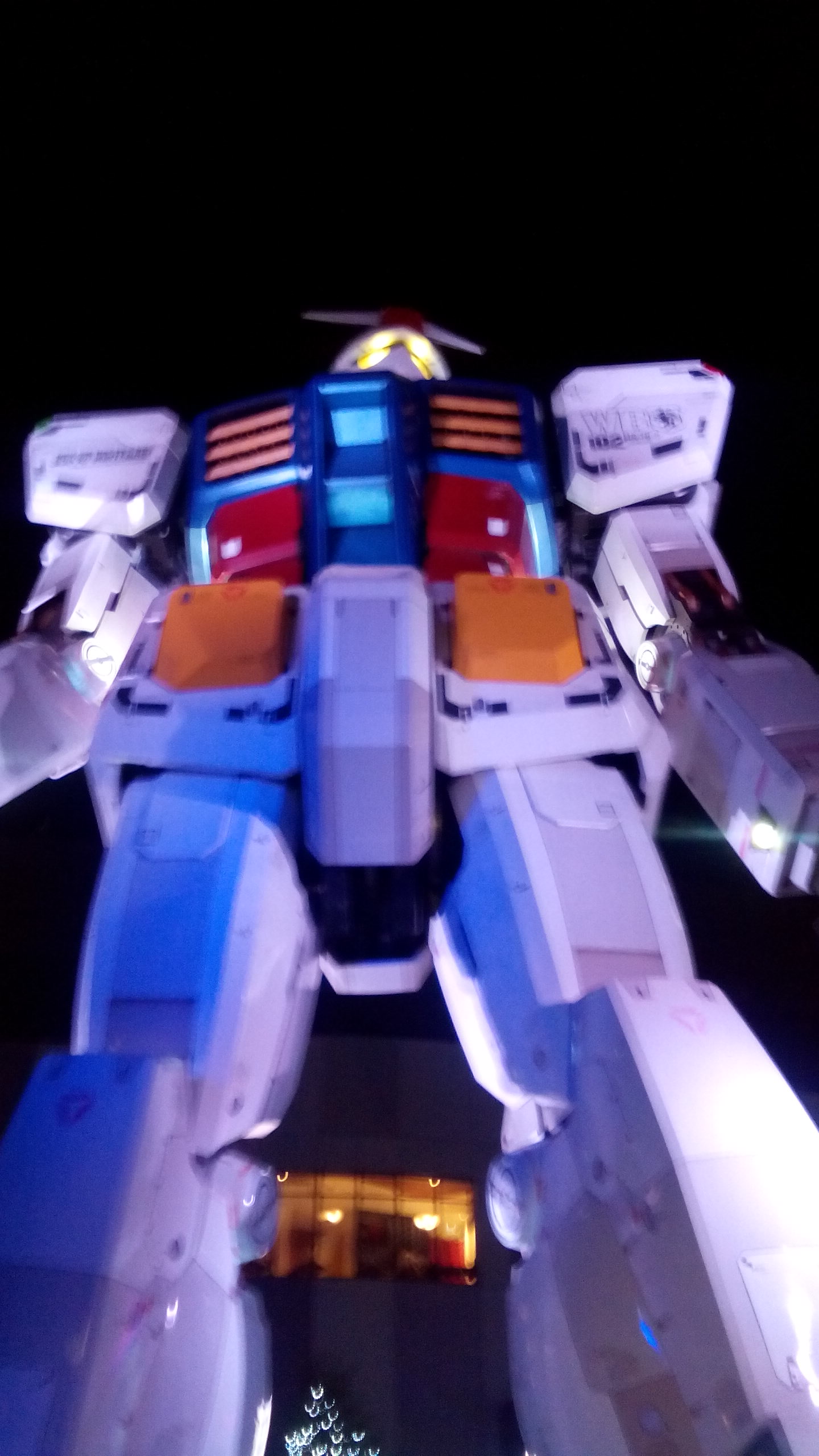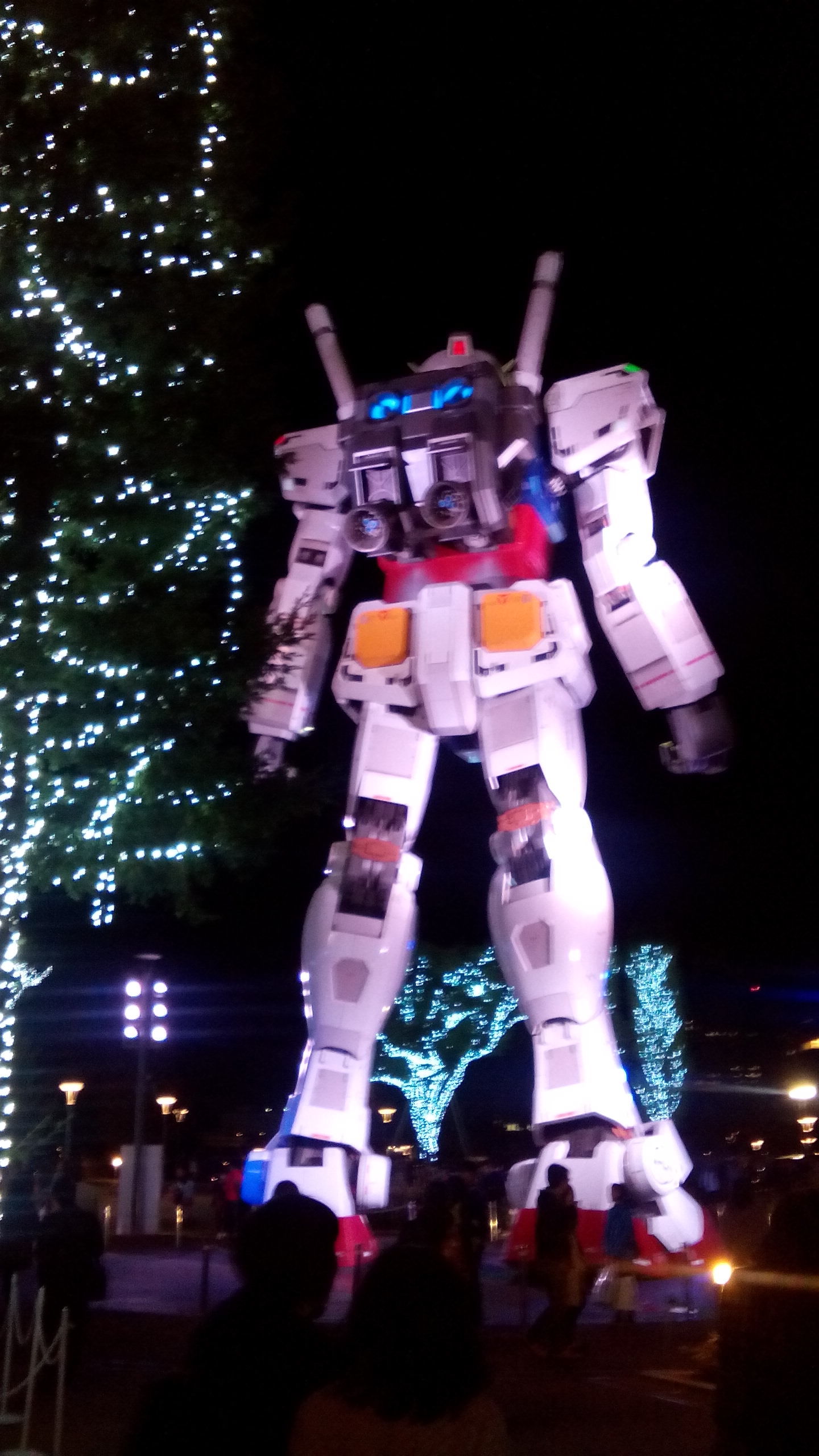 あっという間に日も暮れて、煙臭くなった我々がビルを出るとそこにはガンダムさんがライトアップされていたのでした