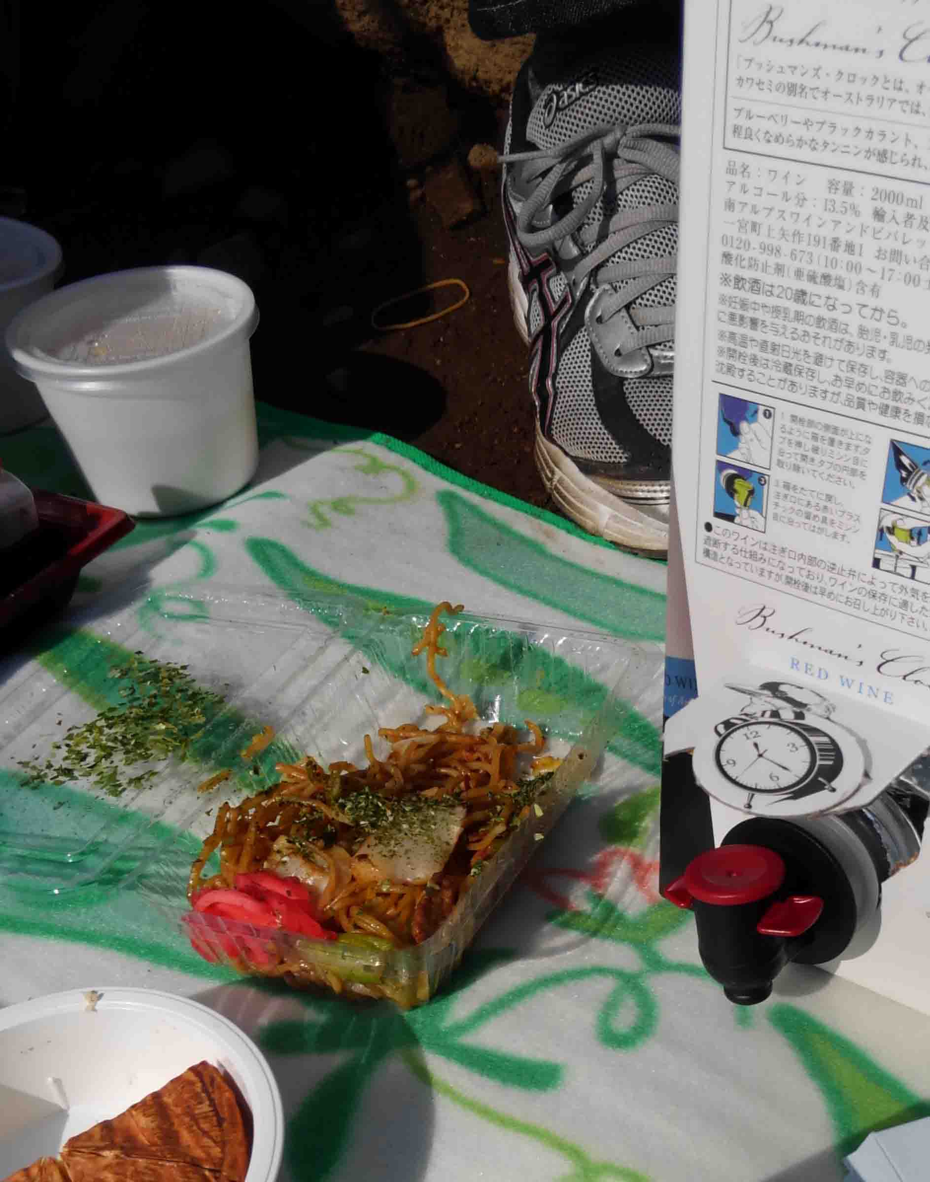 そこにいたトリやヤギは食べてはいけないアレだったので(とうぜんだ)、いさやまもとこ夫妻持参の板橋区随一のトンカツ、そのへんの町内会のヤキソバ、燻製、箱ワインでゆる花見。今年も春がきましたねえ!