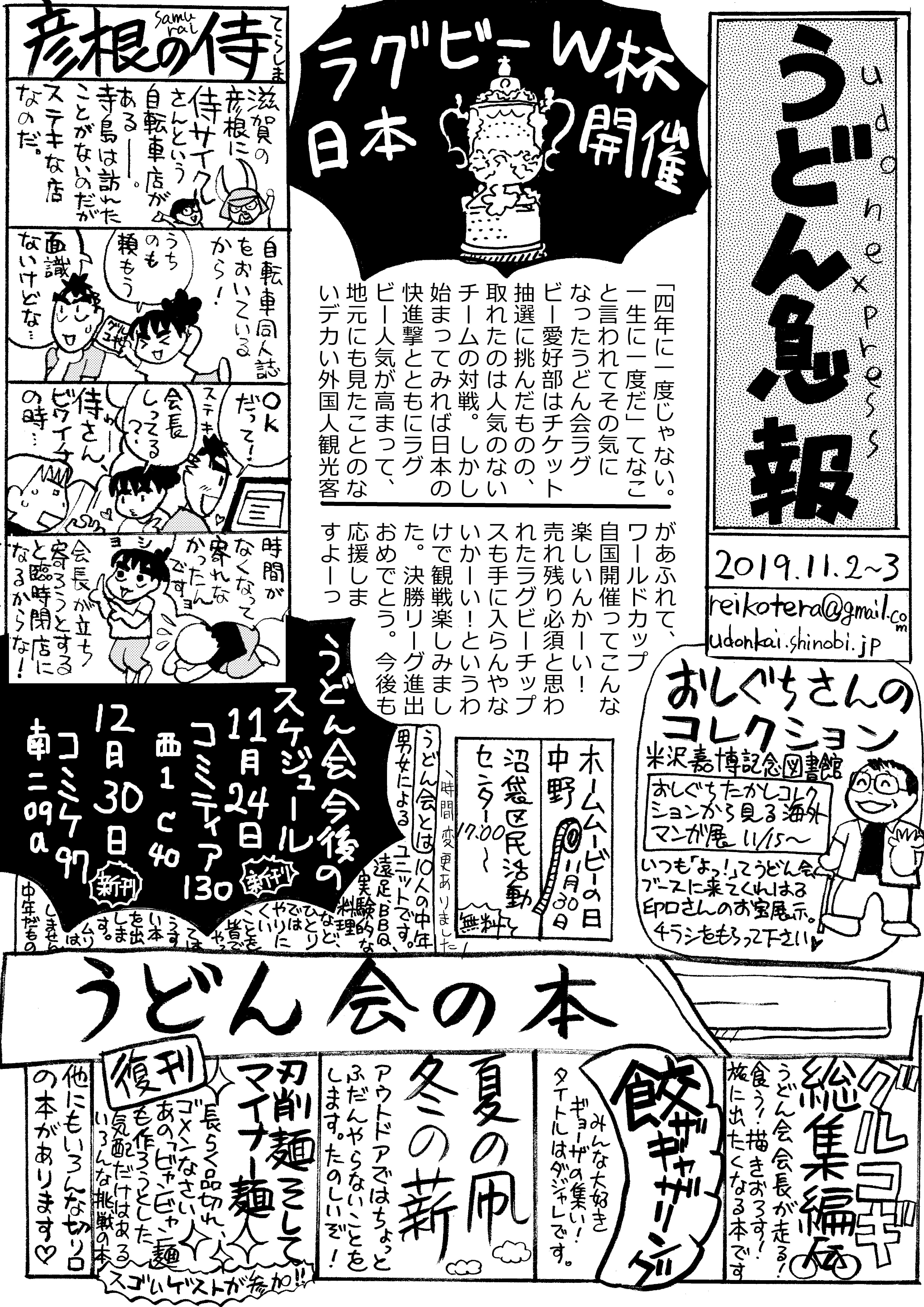 11月3日はおもしろ同人誌バザールでした。前日のやっちゃばフェスと同じく入場無料、ニッチな需要の情報系同人誌と相性の良い神保町古本まつりの会場と地続きの2会場プラス大阪会場とも同時開催。盆&年末の大崎駅前展開とも相まって、「同人誌」というもののすそ野をちゃくちゃくと広げているイベントですな。うどん会は神保町開催には毎度お邪魔しているのですが、今回は即売会主任のてらかわよしこがやっちゃばに続き欠席。今日は会長と寺島で設営するのです!
