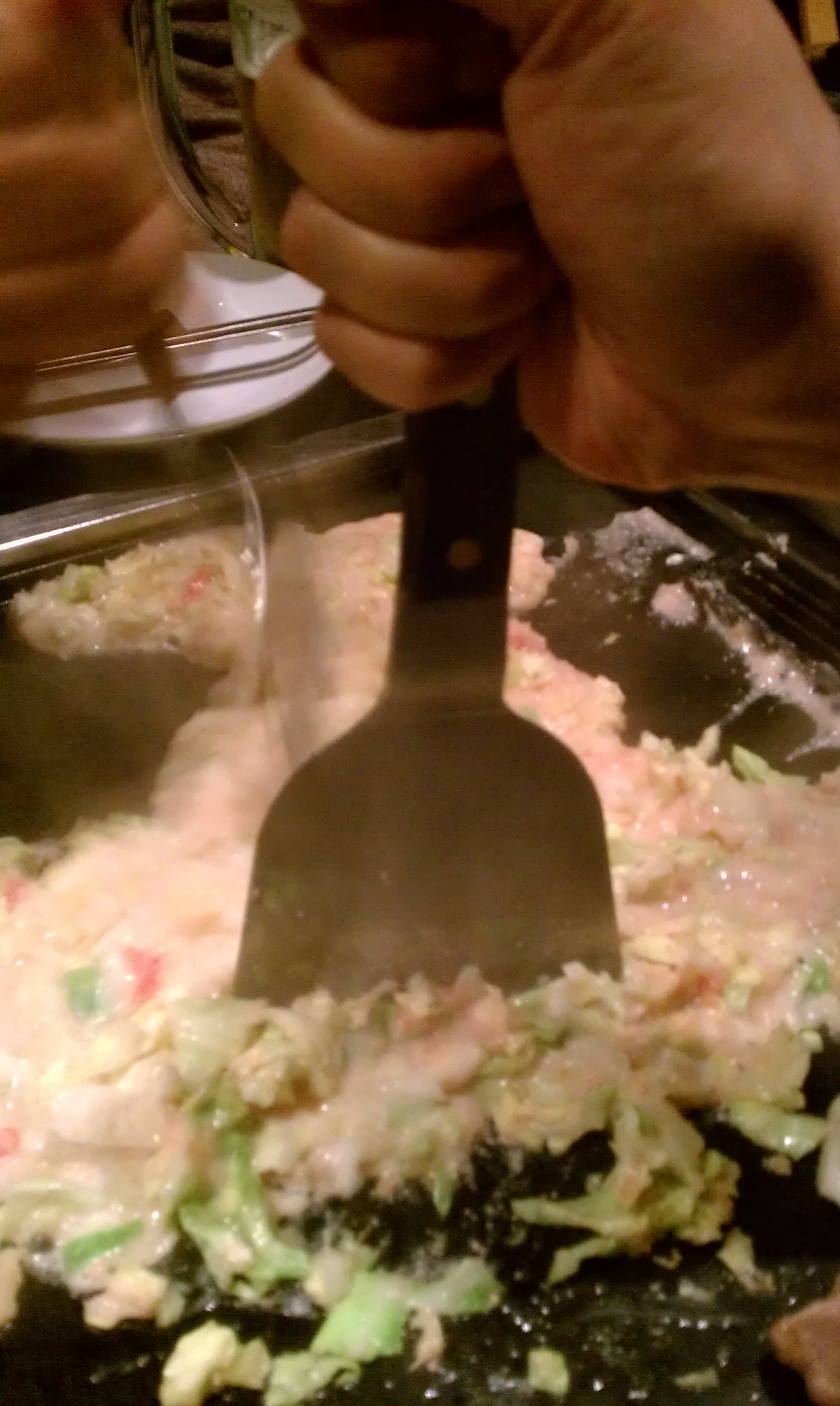「ああっ違います、お好み焼きみたいに大きく焼くんじゃなくて」「え?」「まーこれはこれで」