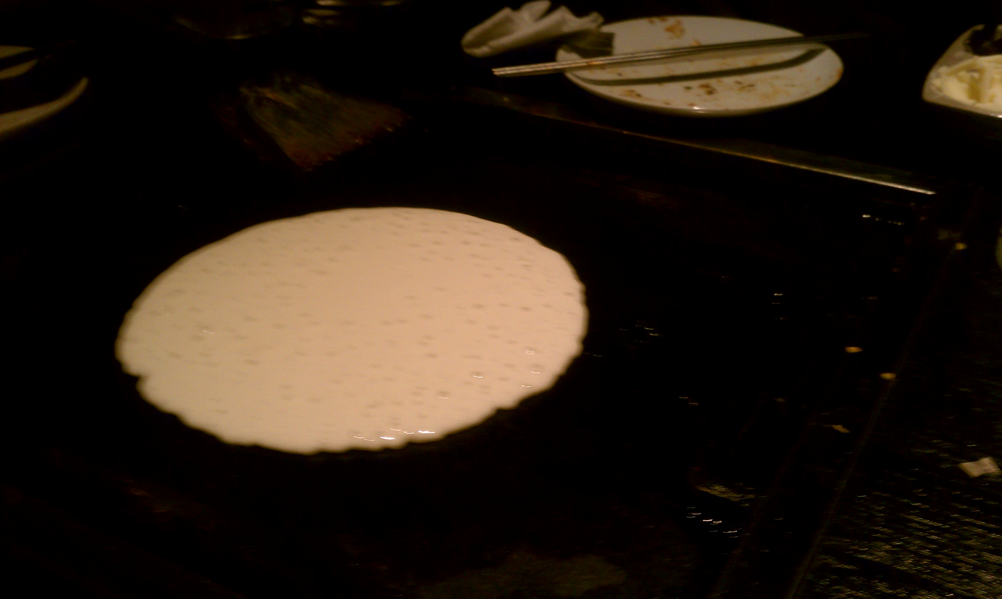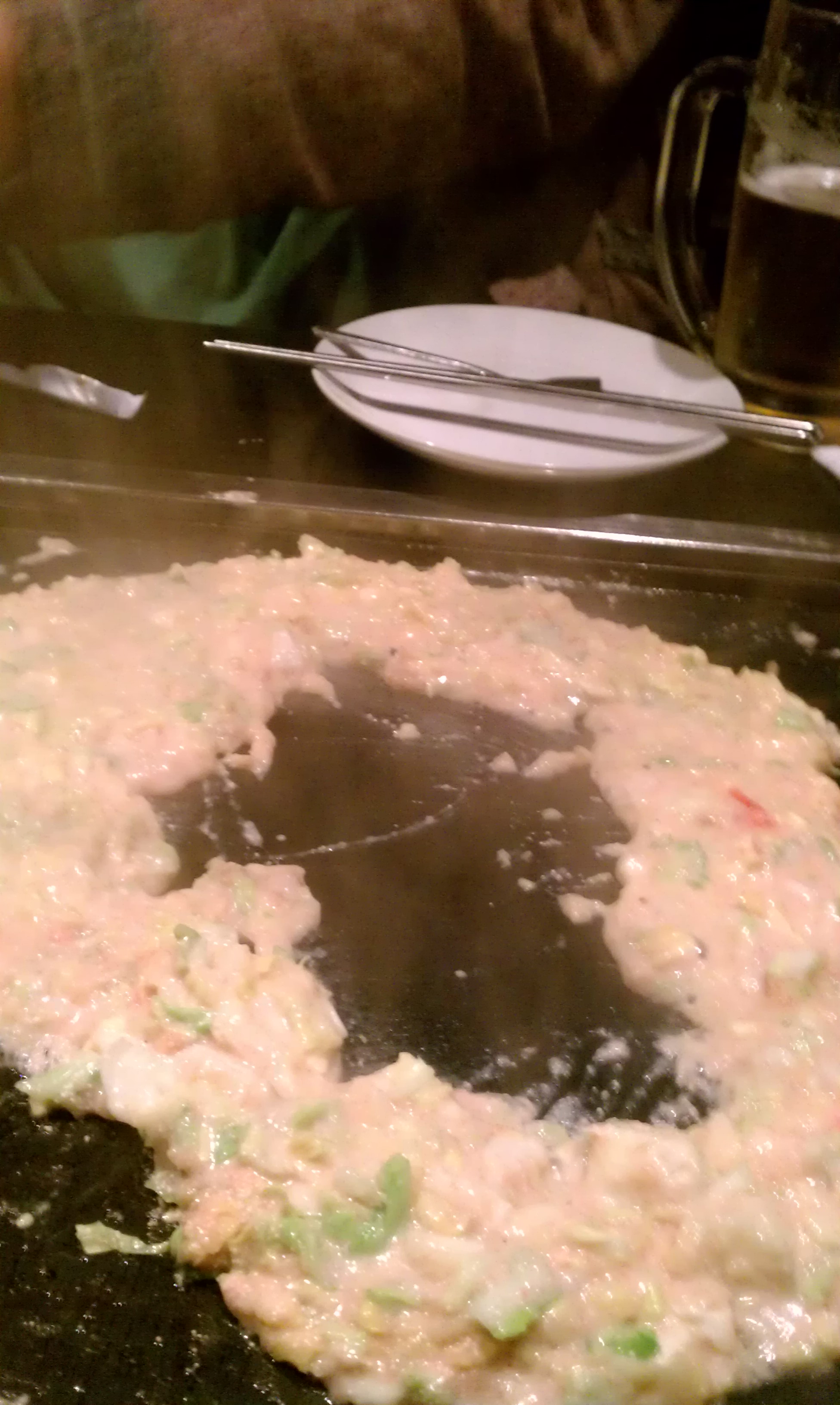 そして具で土手を作って小麦粉汁を内側で焼き…ほどなく「もう食べられますよ」