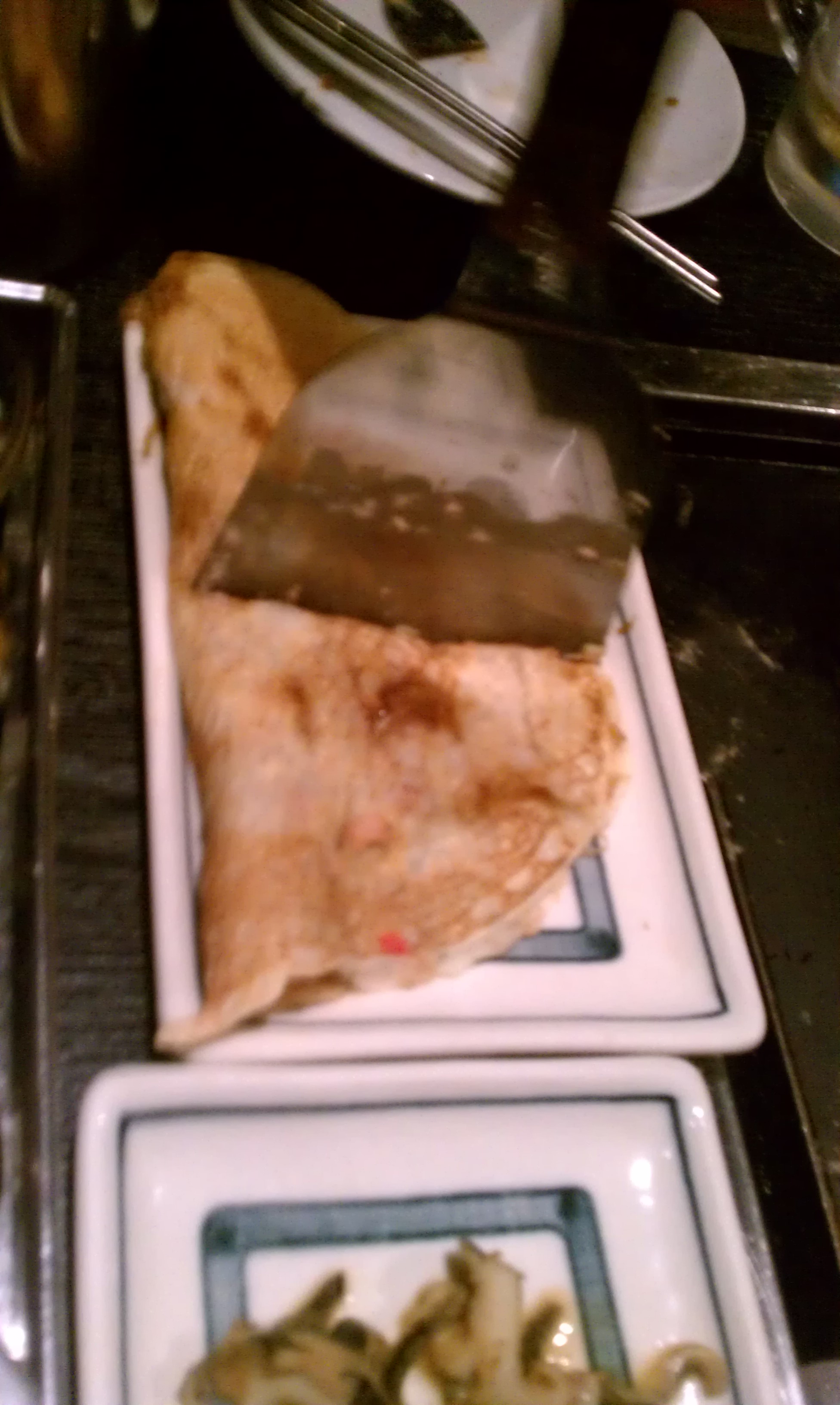シメはもちもちチーズあんこ巻き!「焼くの?甘いの?」「あんこですから」酔ってますね、この質問。「皮を薄く焼いてはさむかんじで」