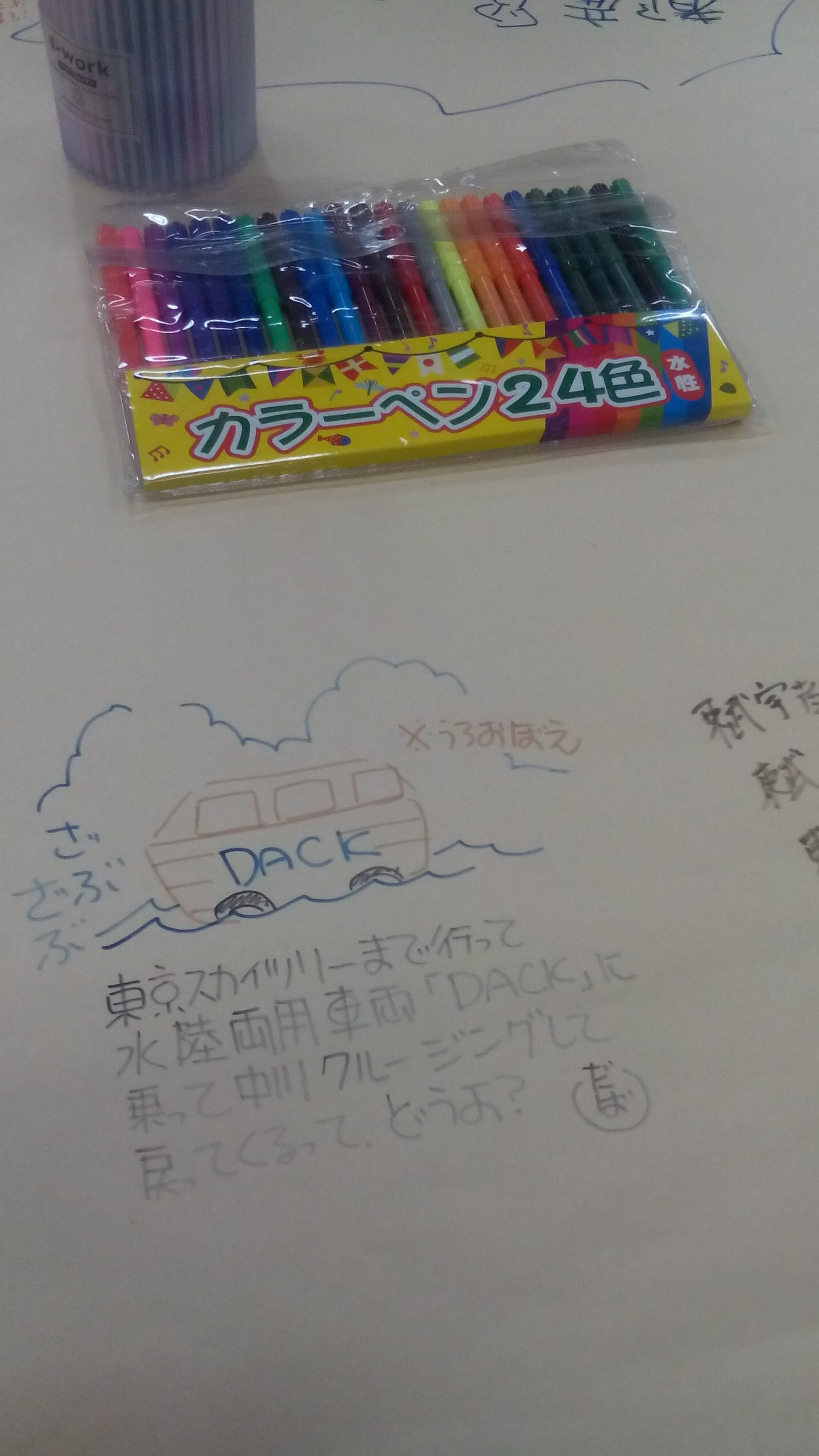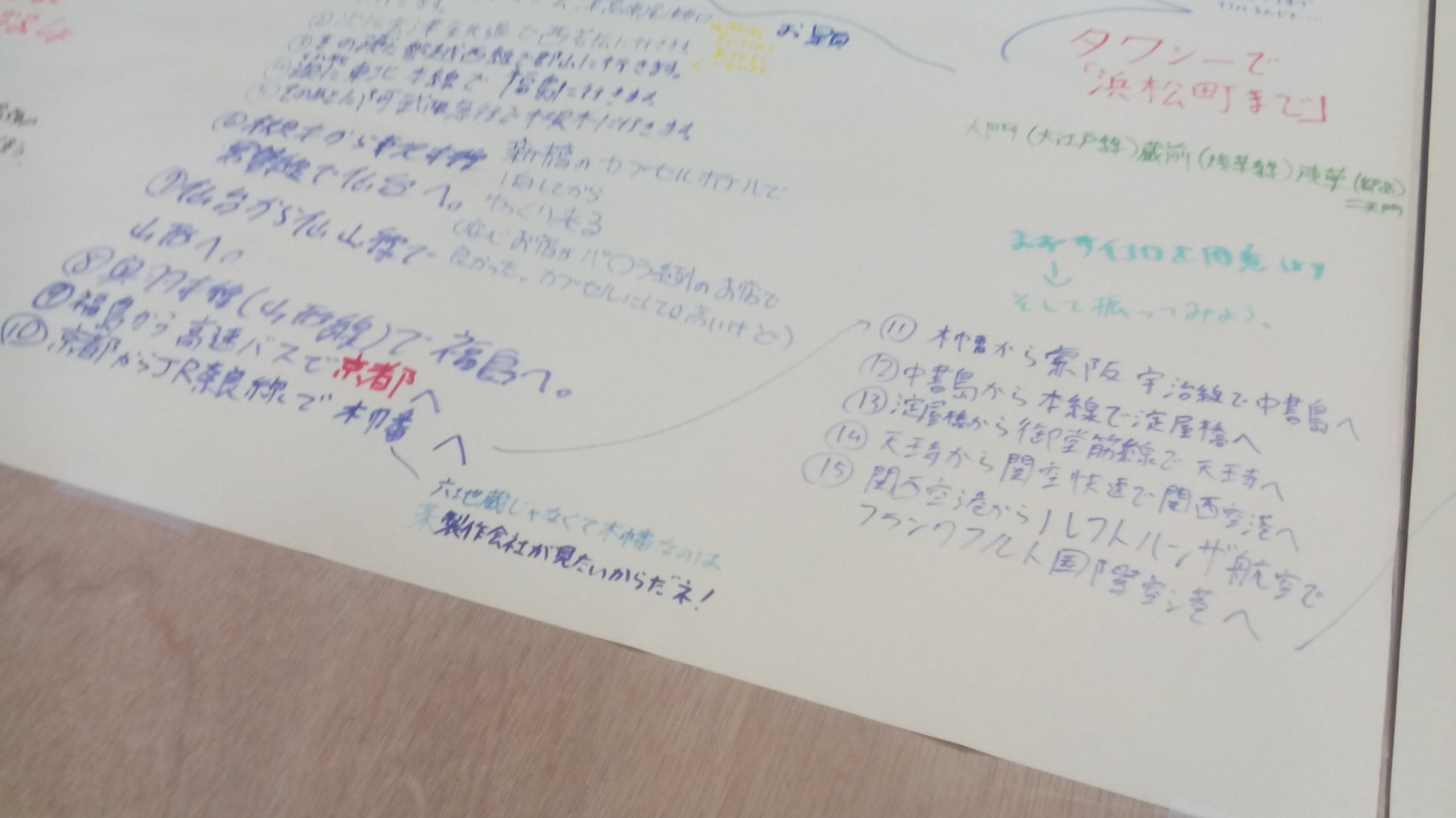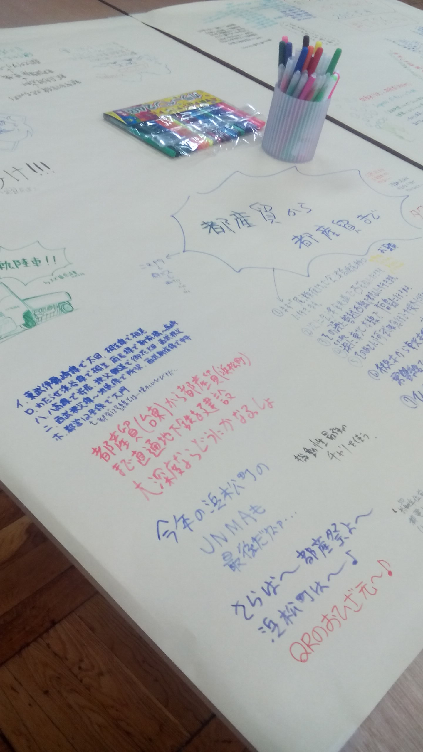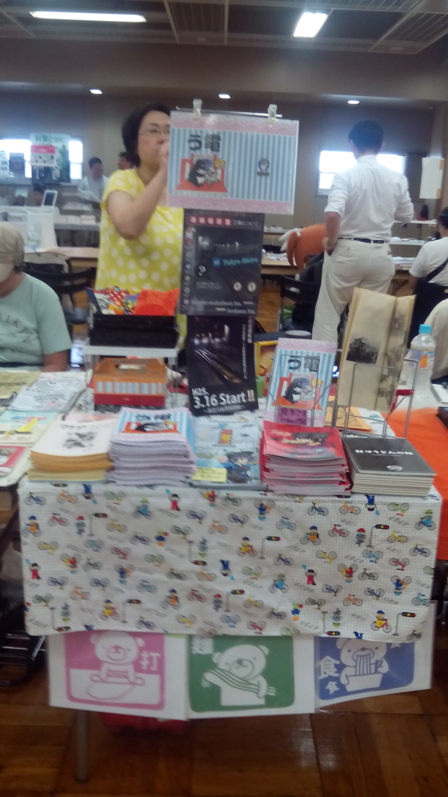 こちらは鉄道ファンが集まる会場の雰囲気の良さに憧れて、寺島がいつか出たいと思っていたイベントです。鉄道にまつわる細分化されたお楽しみがつまっています。BGMは鉄音楽、コスプレは鉄関係のみ、恒例のアフターイベントは鉄道グッズが当たるビンゴで全員参加のらくがきイベントのお題は前回は確か「ここまでどうやって来ましたか?」で、今回は「都産貿から都産貿へ」(浜松町から浅草へと会場が移ったので)。テーブルに貼られた模造紙に、とんでもなく遠回りだったりひねったコースが何種類も書かれます。