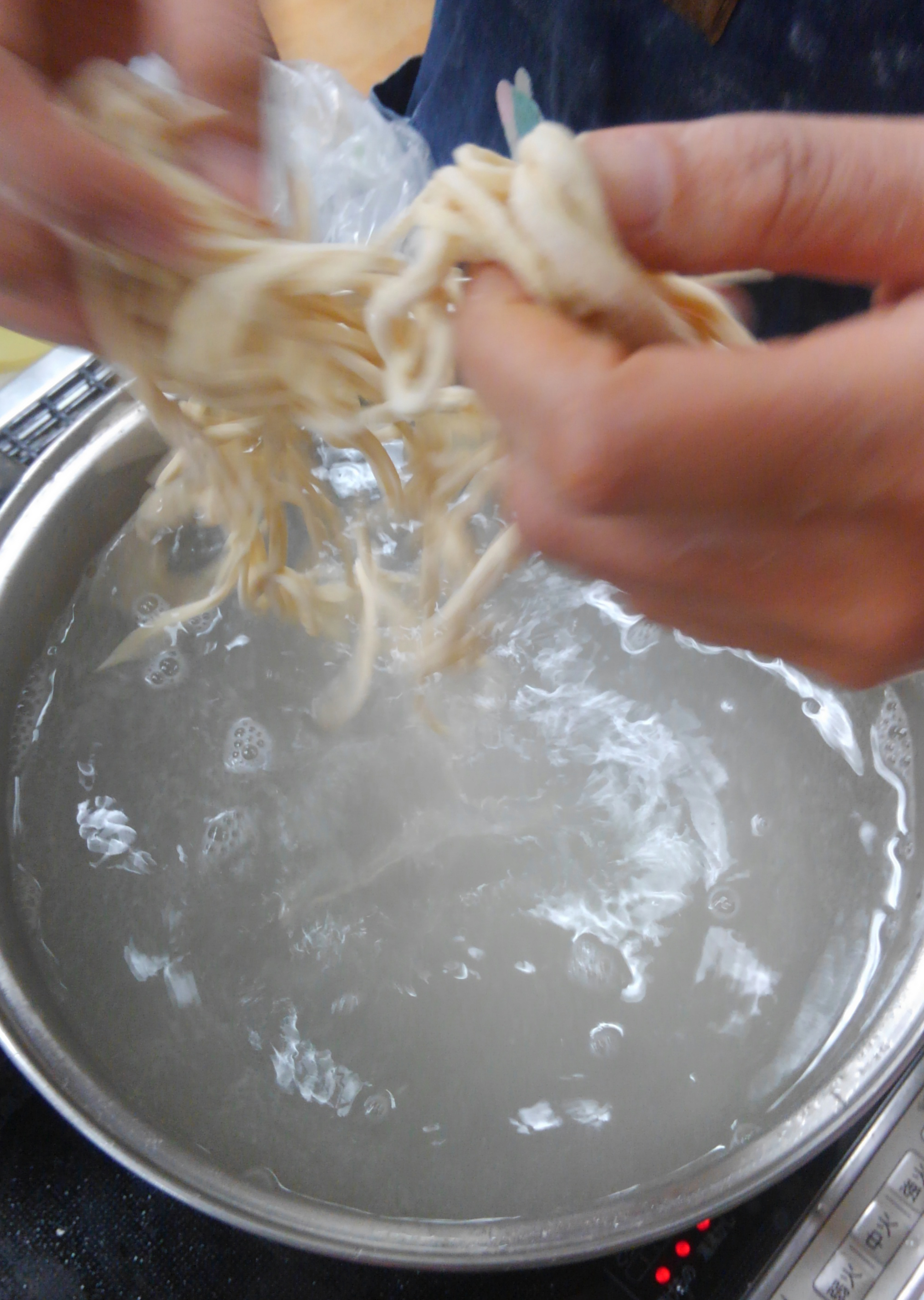 肉ちゃんはうどんに烏龍茶をねりこんで「これがホントの烏龍麺(台湾で日本のうどんのことをこう呼ぶのです。ウーロン、ウロン、うどん(ほんとう))」というダジャレをやったり、パプリカや抹茶を練りこむ遊びを開発。ウーロン麺はなぜかプチプチ切れてましたが成功。