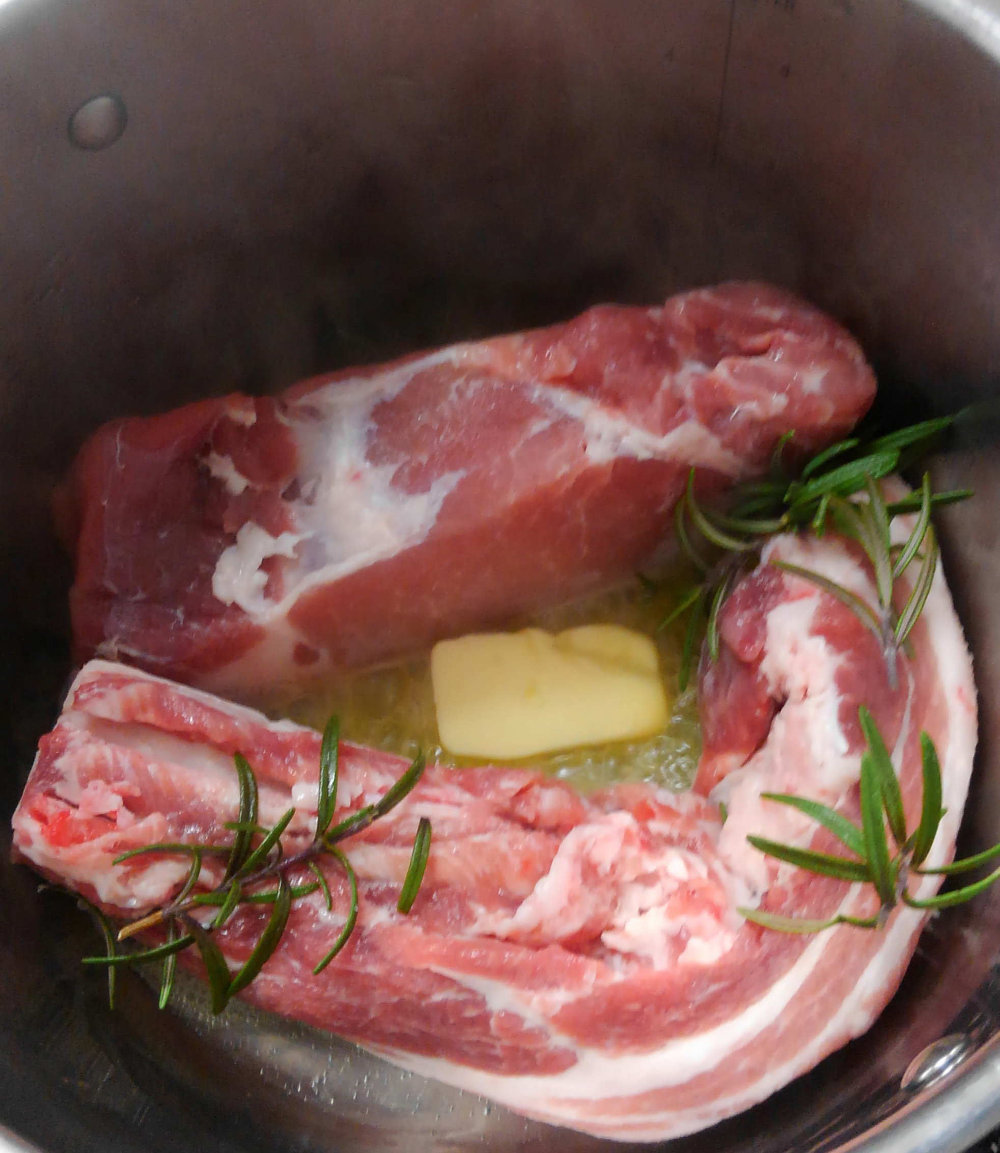 最後にはせっかくオーブンがあるので豚肉とリンゴのポットローストを。