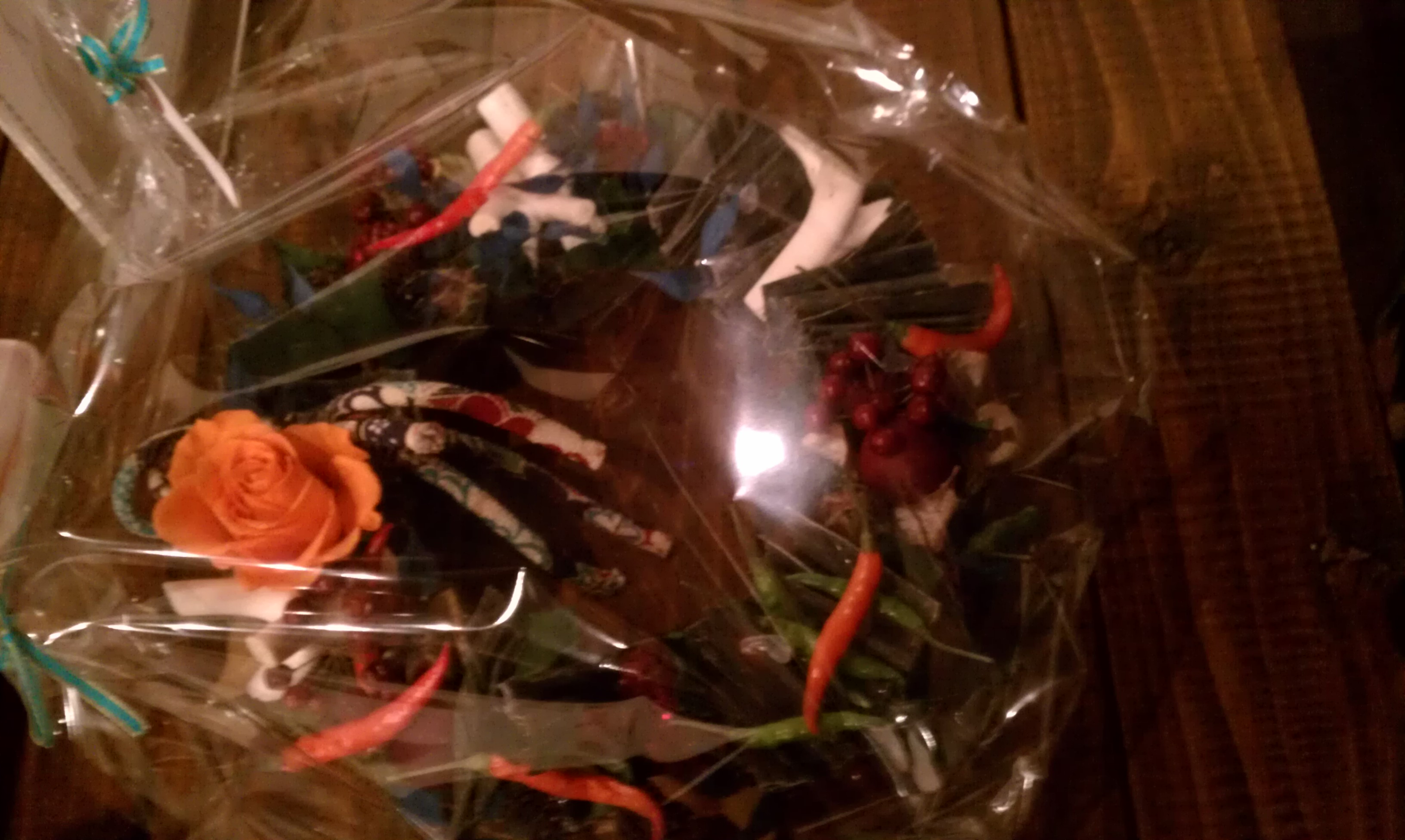 デイリースさんに作ってもらったオリジナル沖縄リース。昆布と唐辛子!