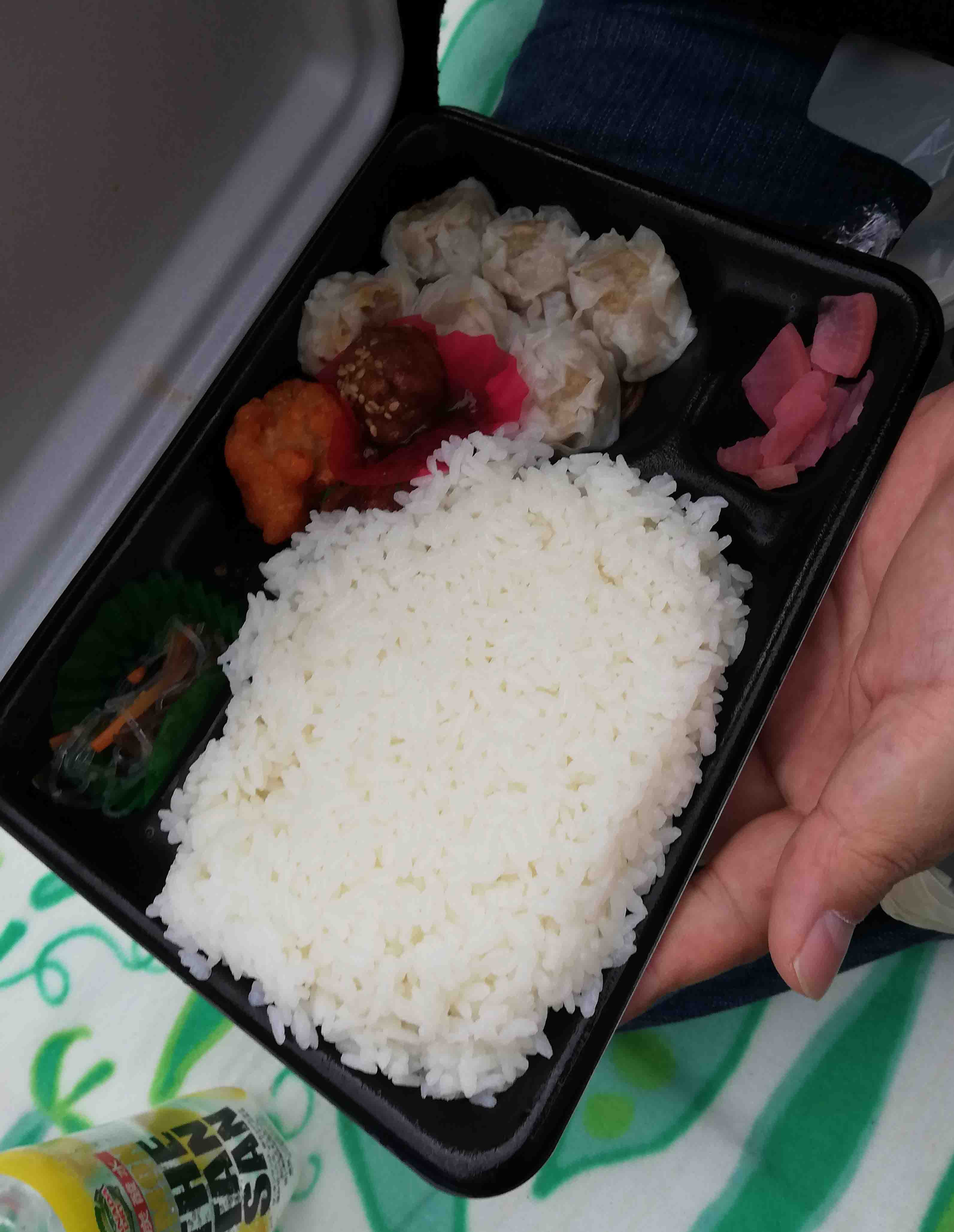 ついったーで見た寺島の古い読者様も来ていただいて、いつもとは一味ちがうお客様に見ていただいて、出展者同士おしゃべりをして、お昼はお隣からおにぎりもらって…なんてのんびりアットホームなんだ。田中は向かいのポプラの弁当です。