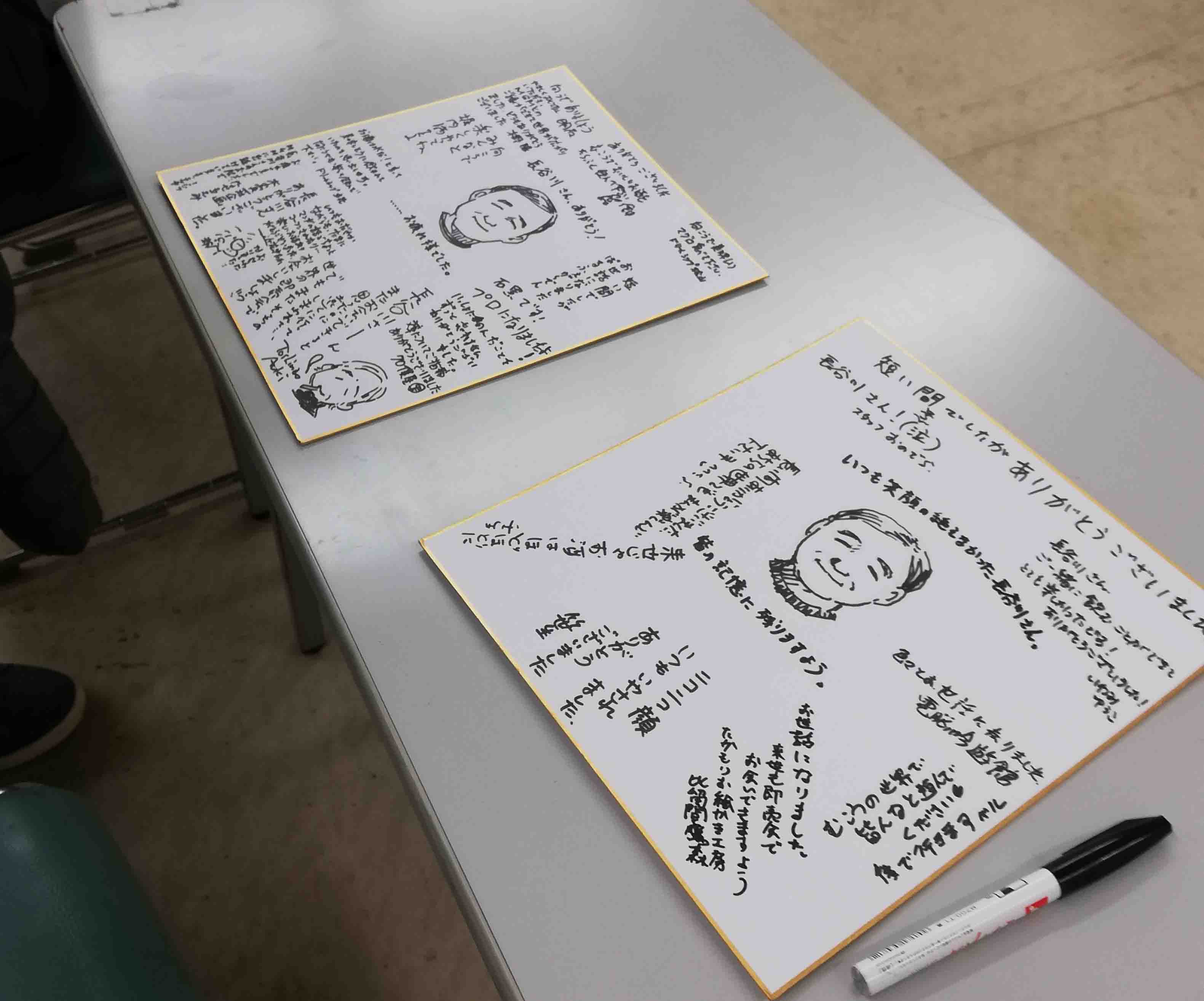 ビンゴのあとは(ゴレンジャーいただきました♪裏はジャッカー。レコードプレイヤーないけど…)酔っぱらってホワイトボードに落書きをしまくるみんな。ボードを写真にとったけど、勝手にアップはできないな…。