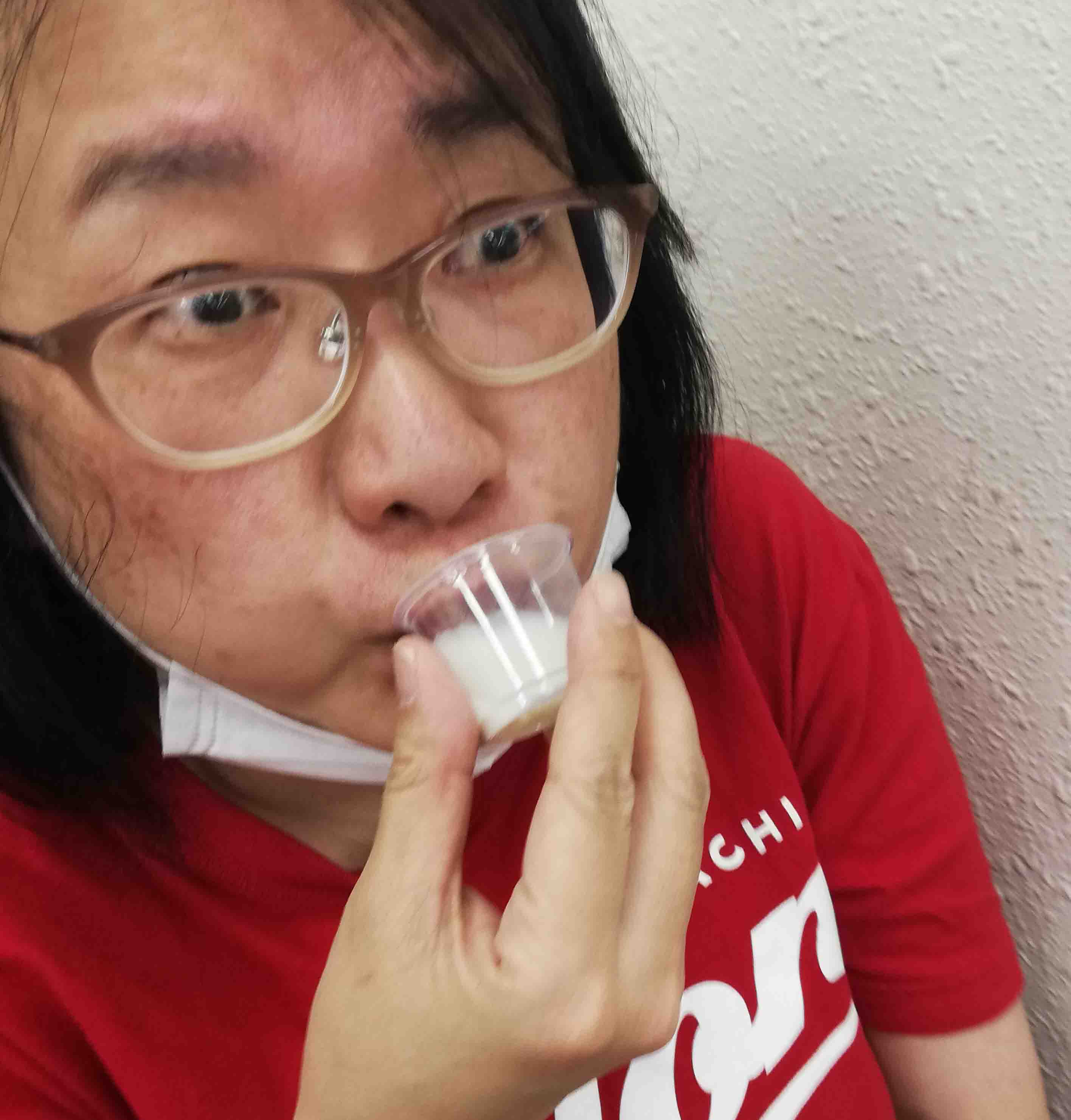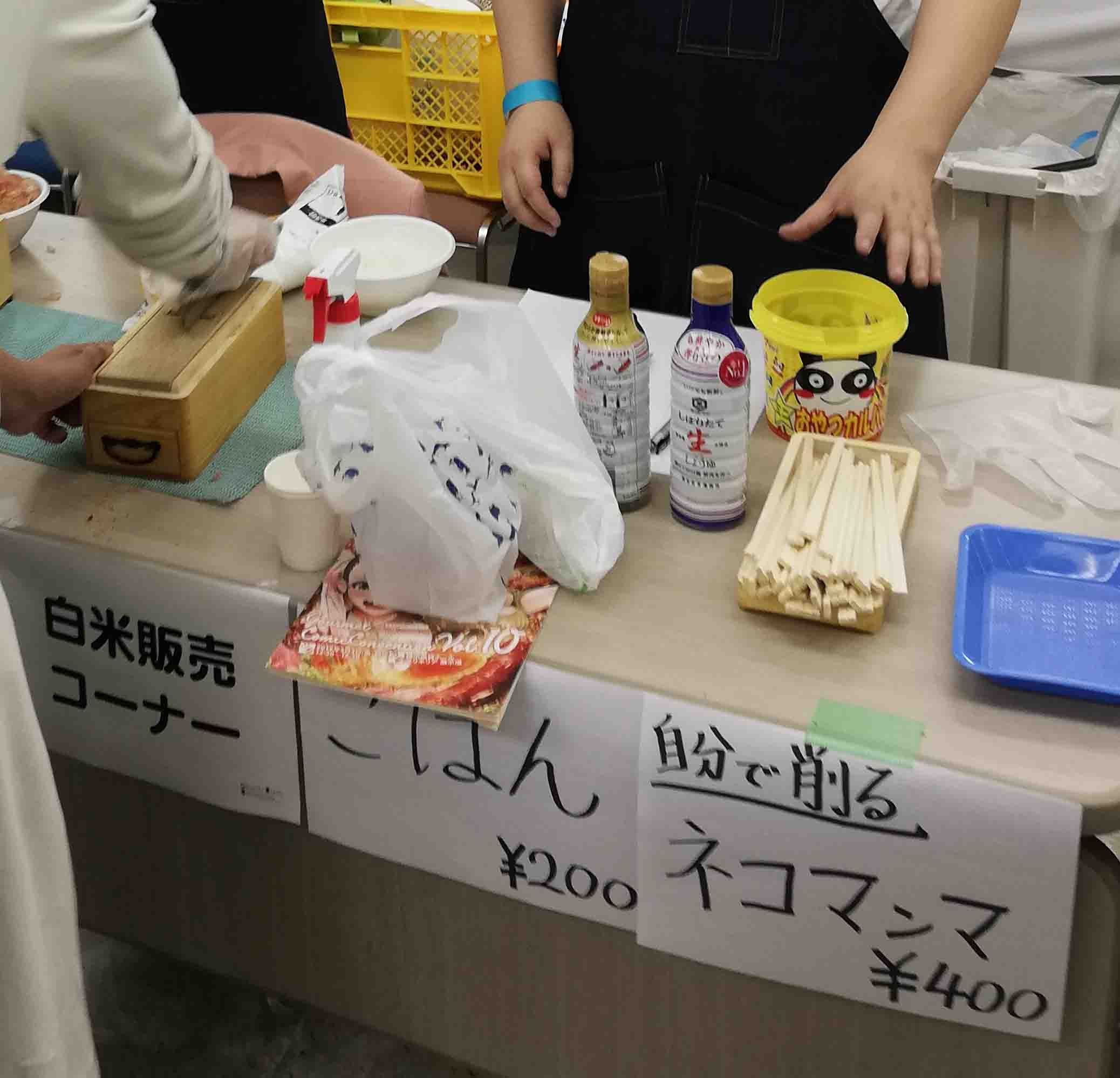 設置終了。ふるまいは餃子本に登場するアレです(写真撮り忘れ)。お酒のコップ置き場もつくったぞ。さっそく身分証を持って成人証明のタグをつけてもらいます(下・写真モデルは他の参加者様)。これがないとお酒飲めないからね!よっぱらい促成栽培でおなじみグルコミ、最近はお酒の販売開始時間をずらしたり、お水の無料配布をしたりといった工夫も効いて、だいぶ安定してきました。お酒は楽しみつつ、出展内容も見てもらえてるカンジ。でも後半、やっぱりお隣のブースにカップ置いてうちの本読んでる人もいたので気を付けていただきたいトコロ(気づくのが遅れ、お隣さまには失礼しました…)。