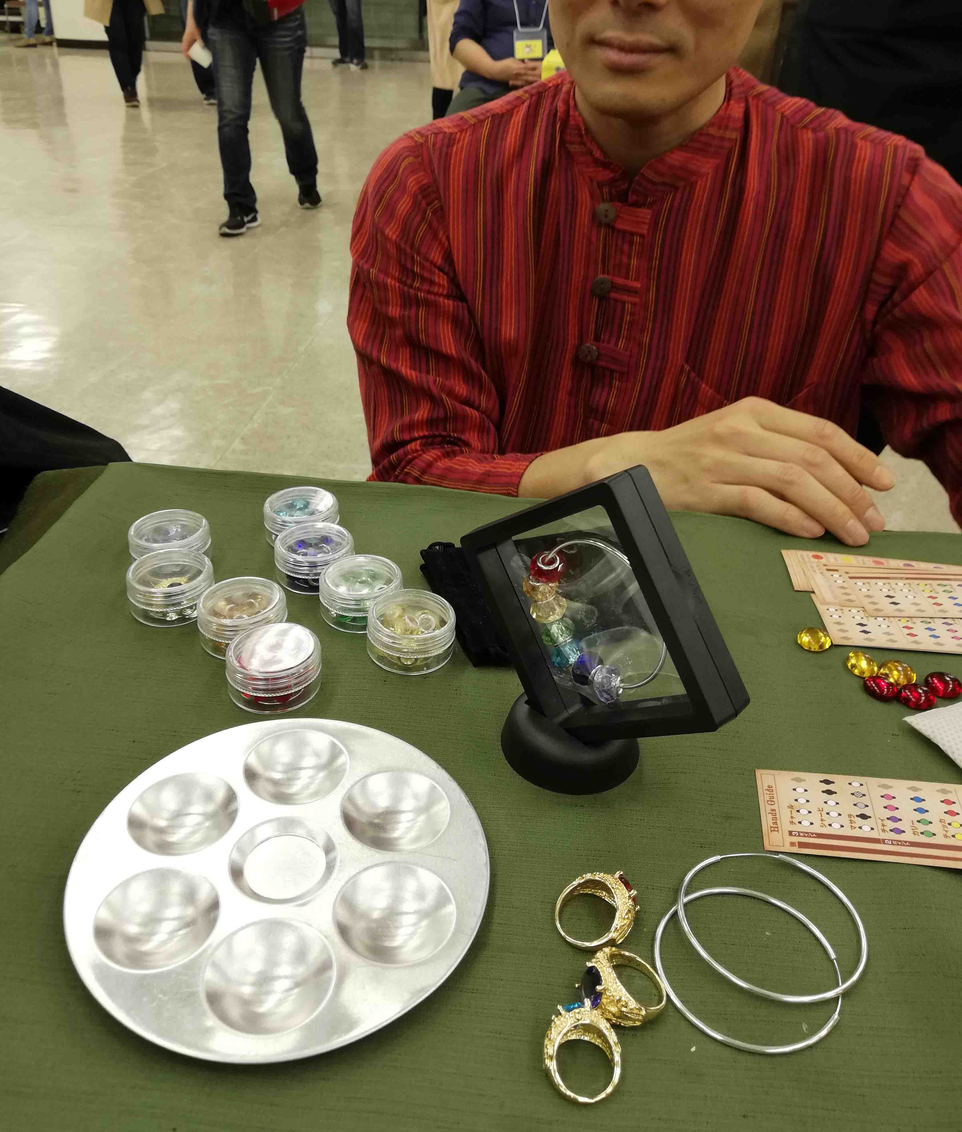 この日ナトリウムランプゲームスさんは「マサラマジック」を販売。去年秋のゲームマーケットで好評売り切れだった同人ゲームです。なんとお香のスティックにしみこませたスパイスの香りを組み合わせるという、珍しく「臭覚」を使うゲームですよ!ケースや道具立てもエキゾチック。漂うカレー臭。グルコミにふさわしい♪