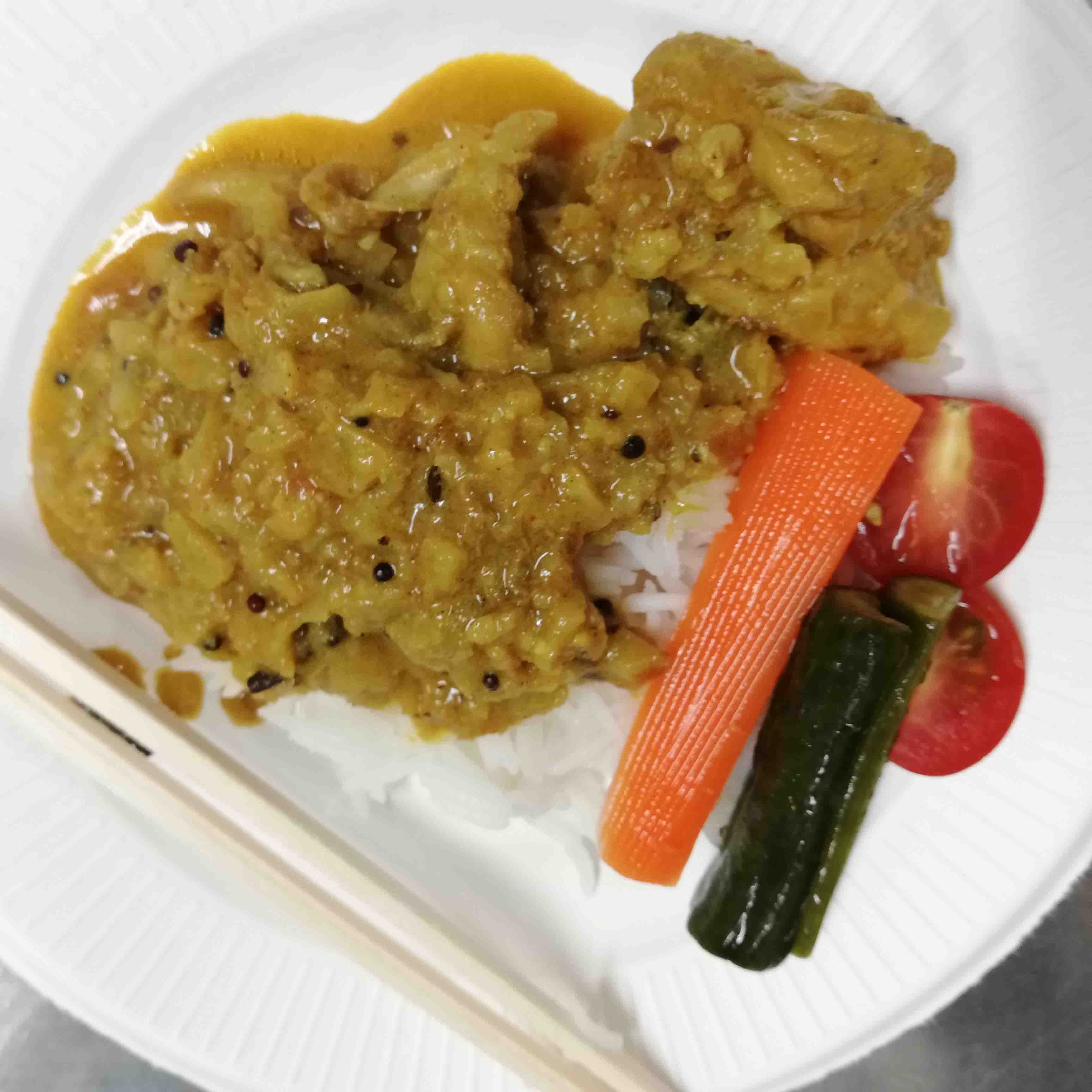 PRAさん。彼をはじめ三組の精鋭が朝からカレーやサイドディッシュを作ってくださっていた。至高のラムに、ポークに野菜…
