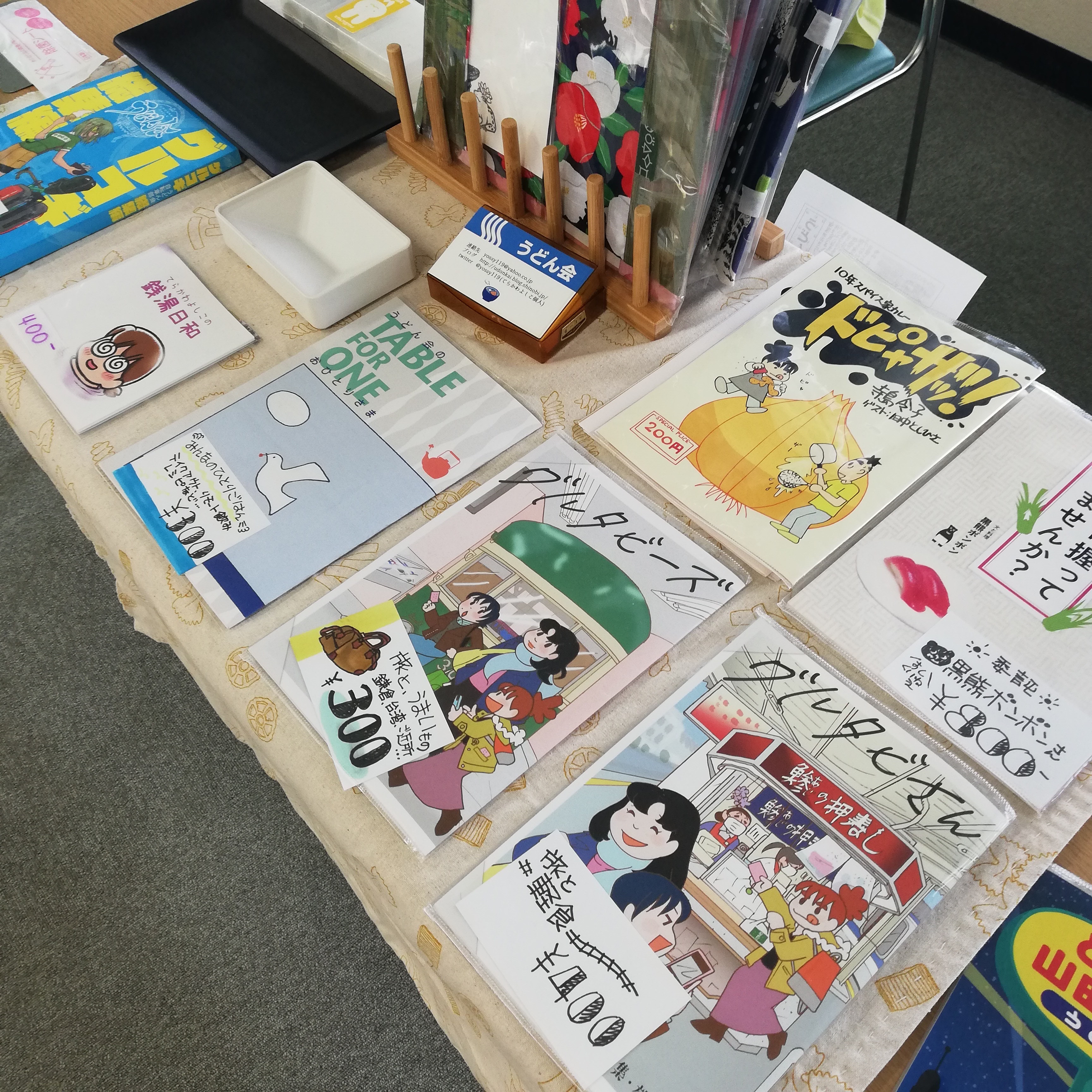 頒布物のほうはというとこの日の新刊はなく、コミティア136新刊の「グルタビさん」がMGMでは初お目見えです。黒熊ボンボンさんからの委託「お寿司握ってみませんか?」と、あとは既刊も並べてっと…