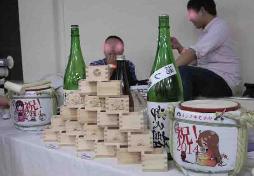 サークルのブースにも酒瓶。差し入れもまた酒。みんな自分の知ってる美味しいお酒を人にふるまいたいのだな!
