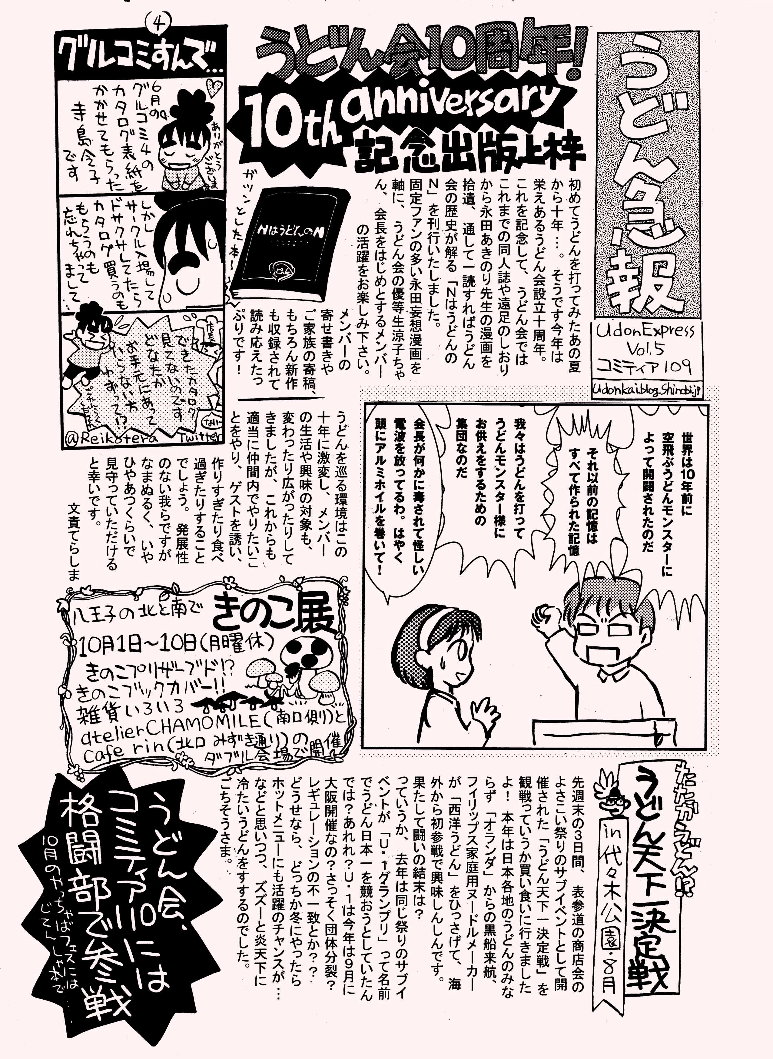 夏休みもおしまいの8月31日、ビッグサイトで開催されたコミティア109に参加しました。おとなりは今回もうどん会メンバー小杉あやちゃんの海明寺裕のいろいろなこと。両ブースに来ていただいた皆様、足をとめてくださった皆様、お買い上げくださった皆様、ありがとうございました!たのしかったですな!!この日の新刊、「黒い本」ことうどん会10周年記念出版「NはうどんのN ながた漫画で見るうどん会の10年史」はコミックZINさんに委託販売をお願いしています。しかし写真だとホントに真っ黒ですな…手に取ると浮かび上がる涼子ちゃん。か、カッコイイ(自画自賛)!