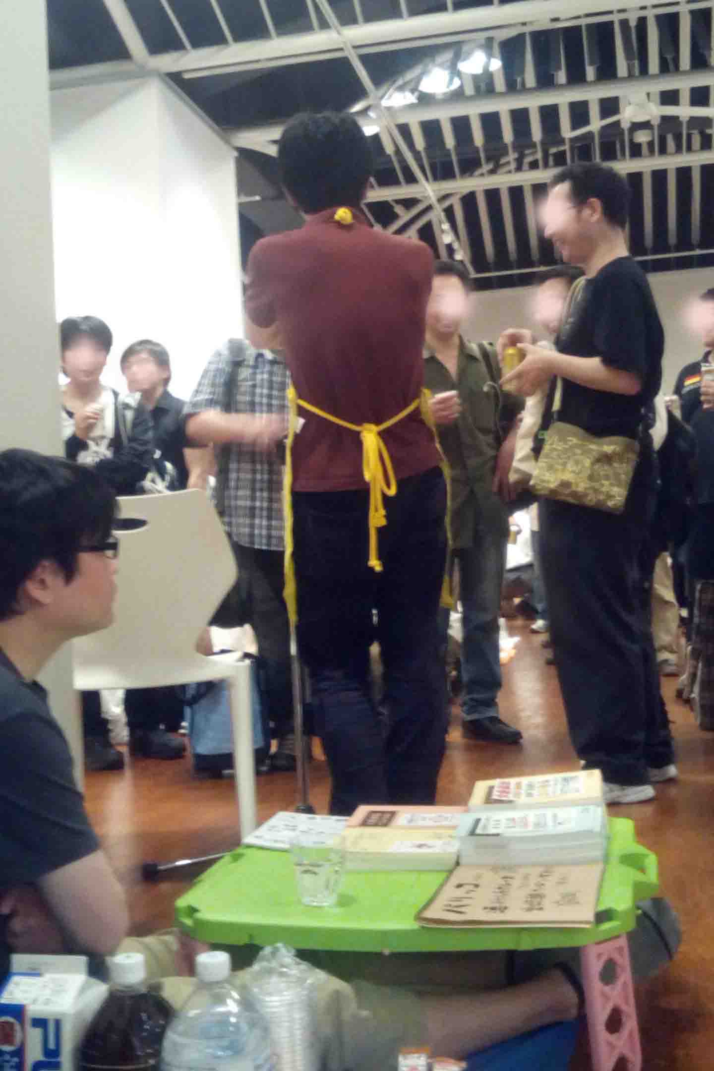 行ってみれば狭い会場に36サークルがあふれて開場は押し、店長がきいろいエプロンの前をもちあげながら右往左往、参加者はサバイバルな状況を楽しむハメに陥っています(いつもどおり)。会場奥に陣取った茶楼のとなりで急ごしらえ感まんてんの設営。