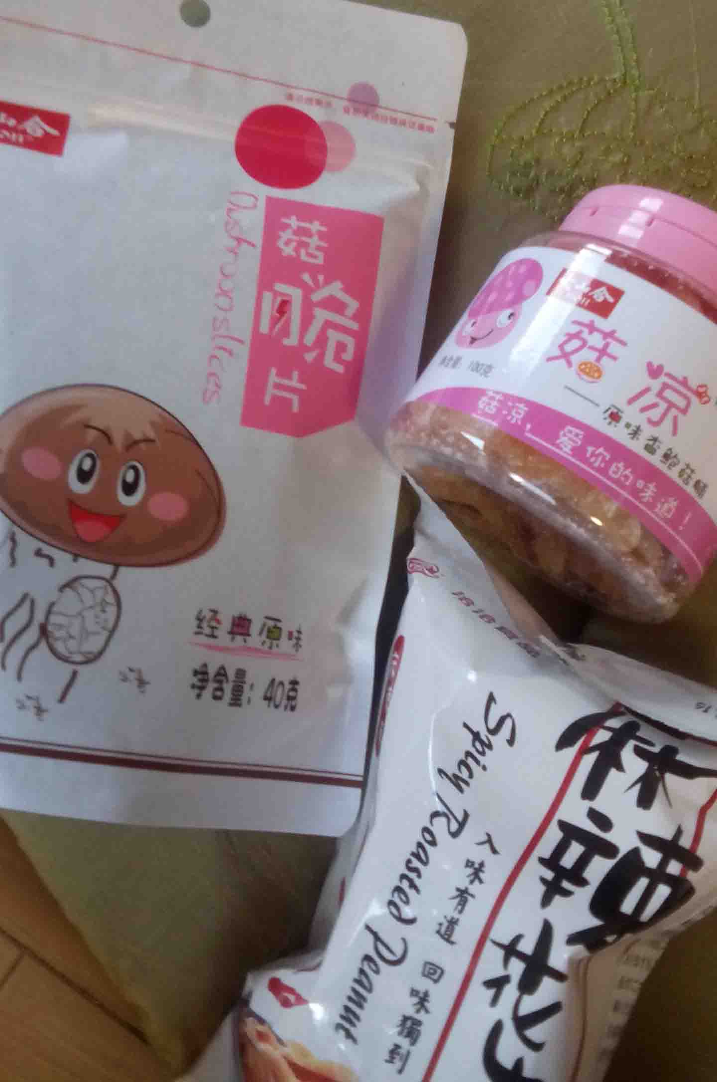 お振る舞いの用意もしていないので、中華なお菓子をちょいと買って(エリンギの砂糖漬け、ドライしいたけスナック、辛いおつまみピーナッツ)。