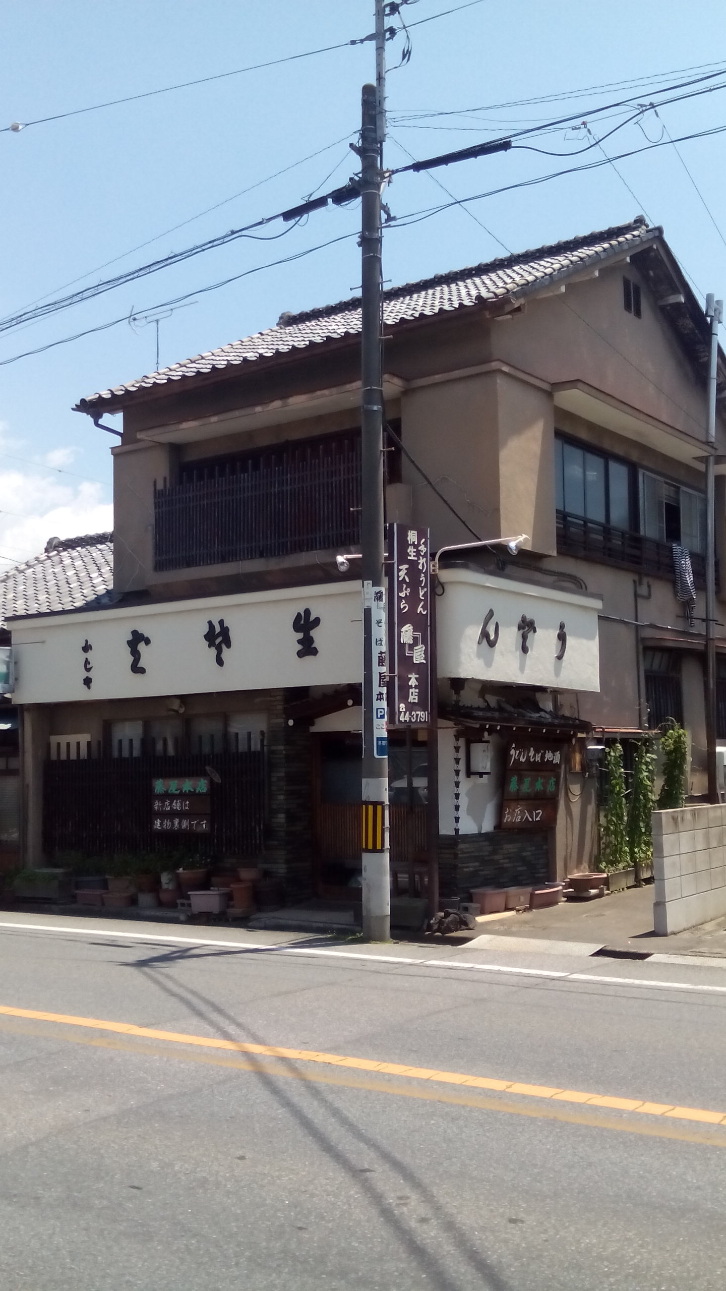 上の写真右の「藤屋」さんはひもかわうどんの有名店です。裏手の新館で営業中。