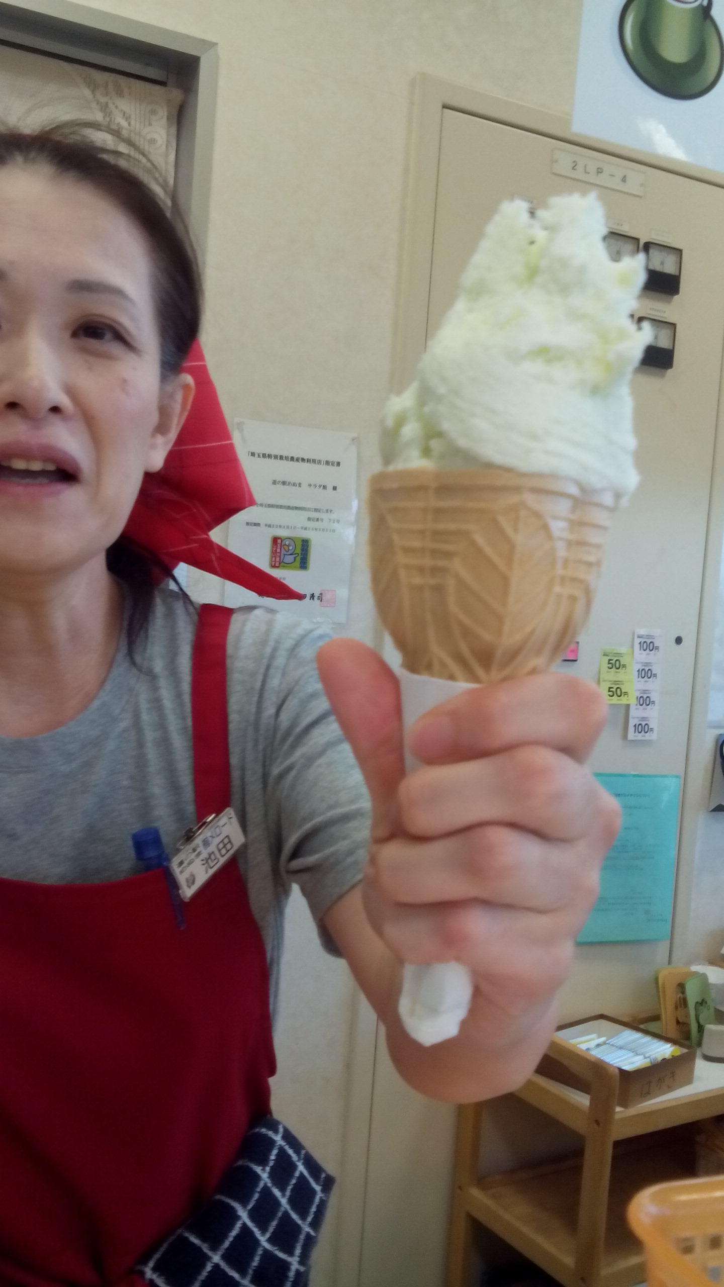 そのあと行田でフライを食べるつもりが時間がなくなってきた我々は、道の駅めぬまで引き返すことに。名物にんじんソフトをゲットだ!と思ったらとっくに終了していたのでかわりに「雪くま氷」や名産・妻沼ねぎとライムのジェラート「ねぎらい」で一服。北関東のネーミングセンスには何かと感銘を受けました。いわばゆるゆるの直球。ねぎらいは、意外とねぎが主張しすぎず美味しかったですが、普通にとっても美味しい季節のトウモロコシジェラートにしとけばよかったと思わんでもないです。