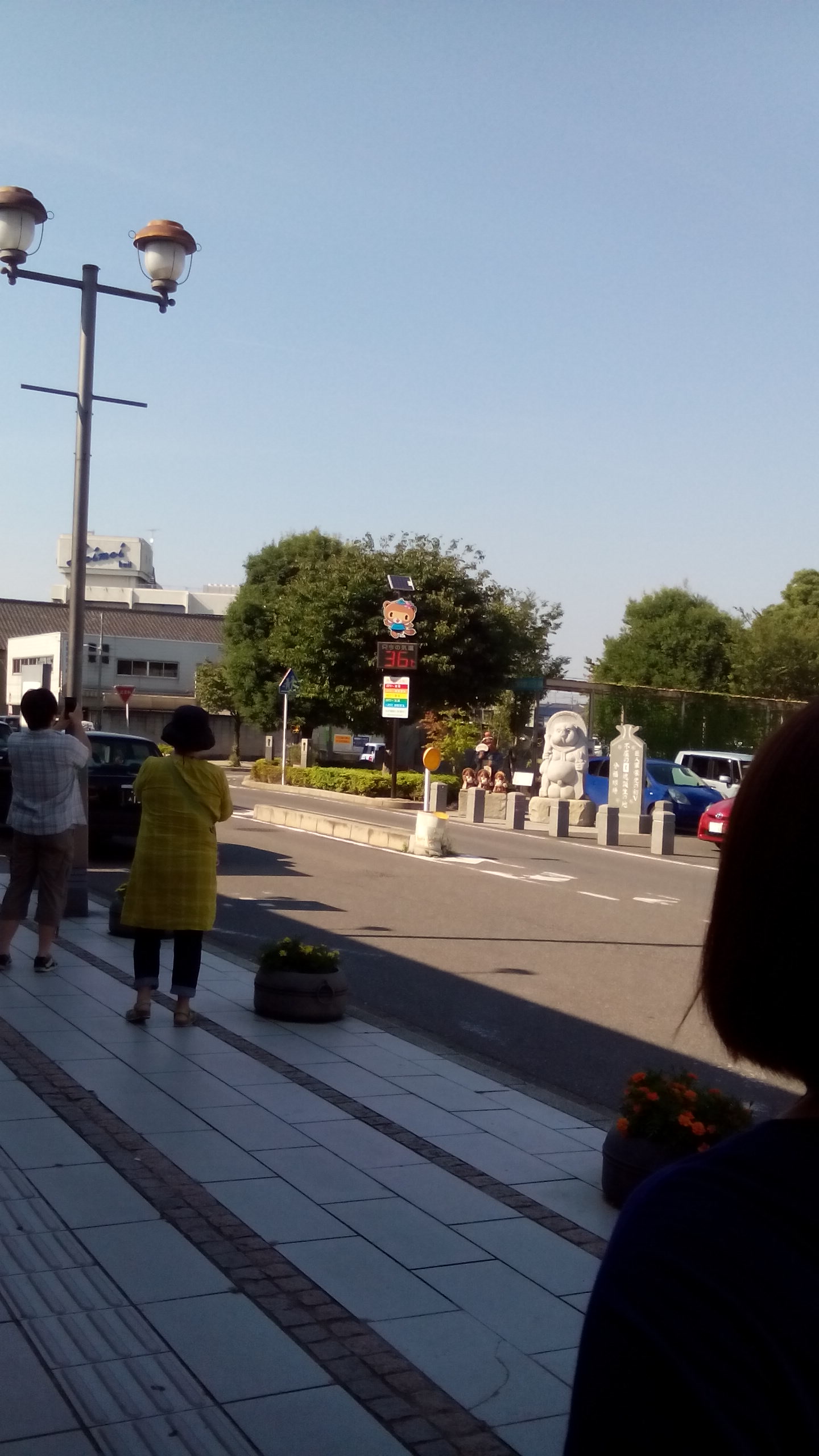 駅前の温度計36度…駅通路を通ると厨房か工場みたいな扇風機が…。暑い!